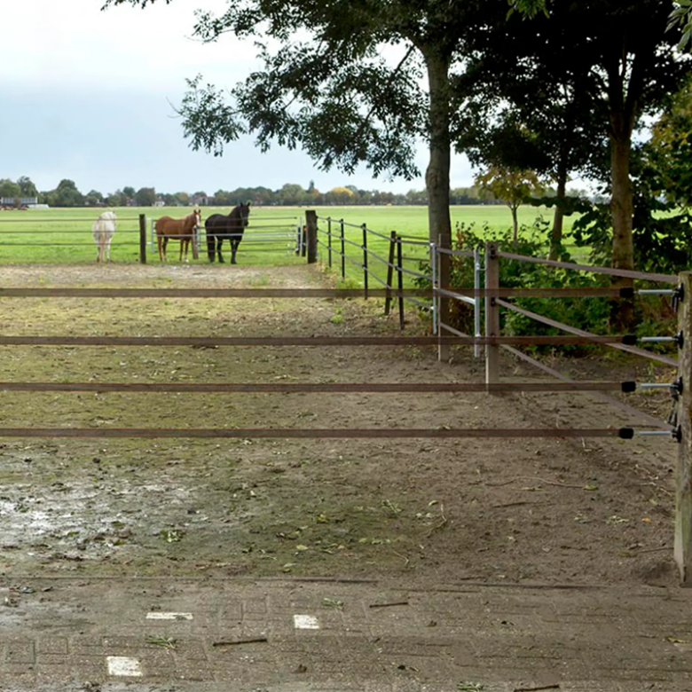 Grindlösningen förhindar även att trådarna läggs på marken där hästen riskerar att trampa på dem.