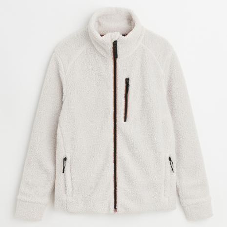 Stilren fleecejacka med krage, dragkedja fram samt 3 fickor med dragkedja på framsidan.