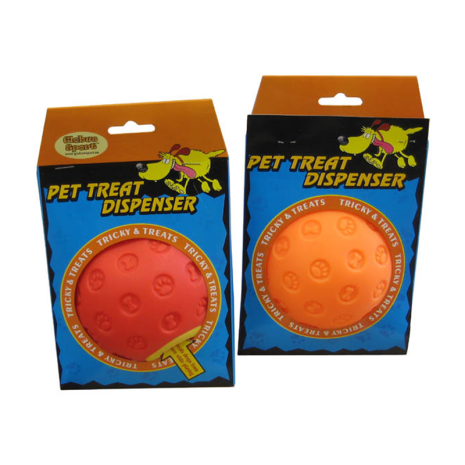 Fyll bollen med hundens favoritgodis, låt sedan hunden knuffa och rulla bollen tills belöning trillar ut. Uppmuntrar till stimulerande lek som varar länge.