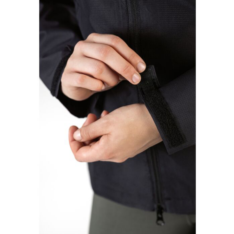 Vattentät och figursydd regnjacka med gömd huva invikt baktill i kragen.