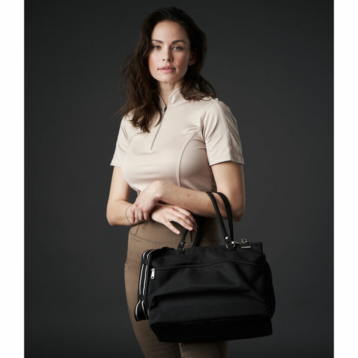 Handtag och justerbar axelrem som även kan justeras i längd.