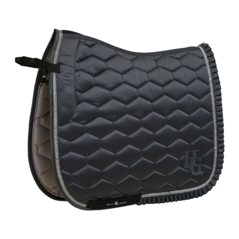Med dekorativ veckad kant och silvrig glittrande passpoal.