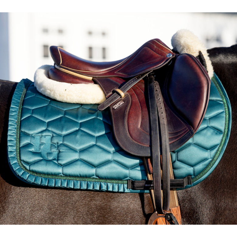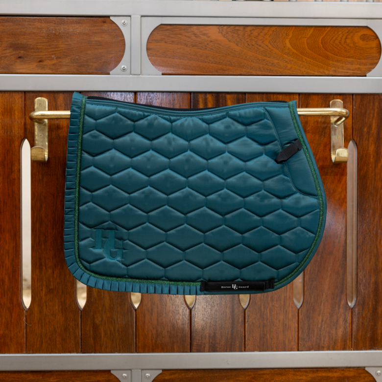 Utrustat med sadelgjordsöglor med 3 fack för olika sadelgjordslägen, samt små kardborrefästen som fästes i sadelns D-ringar för en stilla passform.