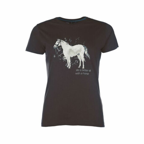 Motiv med vit/glittrande/skimmrande häst och texten "life is better with a horse".