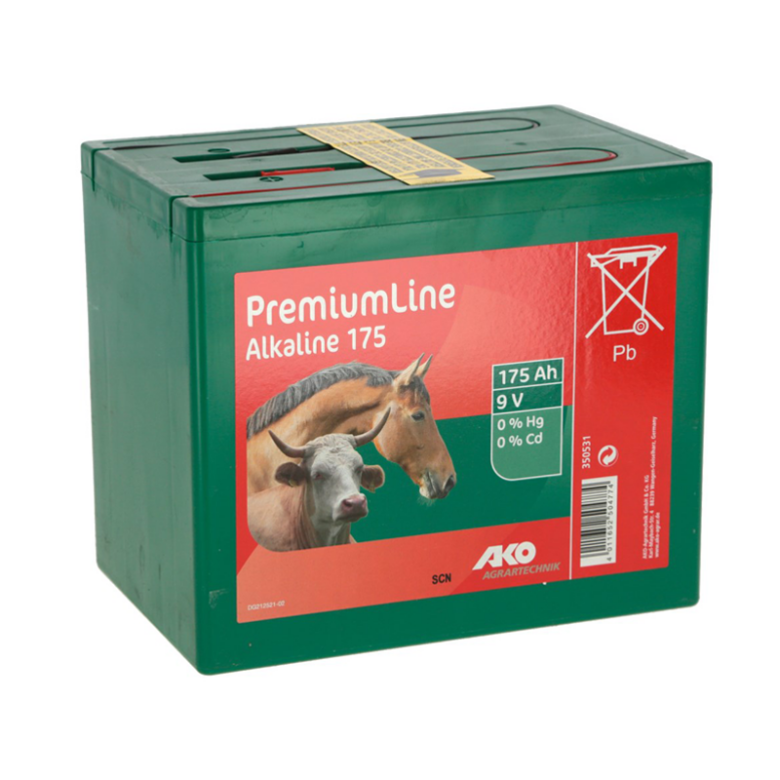 9 volts/175 Ah alkaliskt torrbatteri som håller en konstant hög spänning och sänder en jämn utgångspänning till stängslet genom hela sin livstid.