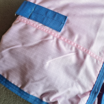 Färg: ljusrosa färg med blå passpoal