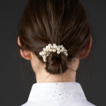 Dekorativ hårsnodd med pärlor samt blommor med glitterstenar.