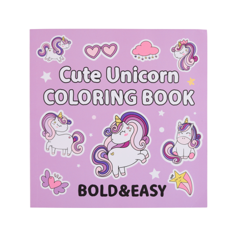 Färgglad målarbok med 80 sidor konturritade illustationer av enhörningar, ponnyer, blommor, regnbågar etc.