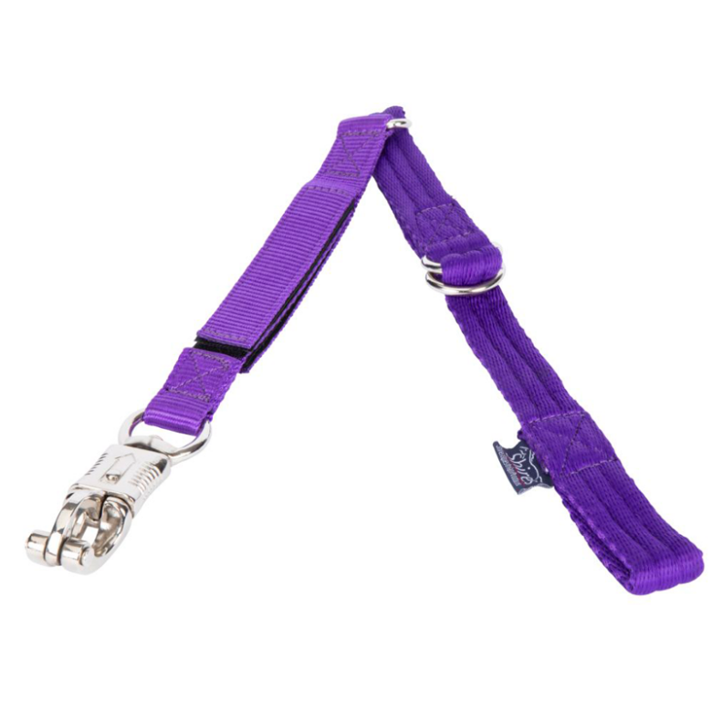 Med panikutlösande funktion där den snabbutlösande delen släpper och sitter kvar som handtag på grimman, medan den andra delen blir kvar i ringen på väggfästet.